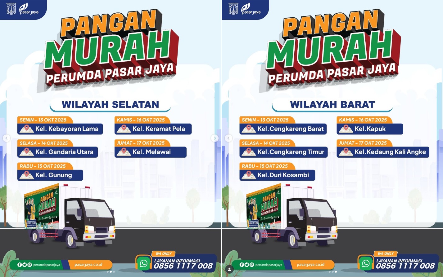 Hal ini untuk membantu masyarakat memenuhi kebutuhan bahan pokok dengan harga jauh di bawah pasaran. Program ini berlangsung mulai 1–17 Oktober 2025, menyasar berbagai kelurahan di Jakarta Selatan dan Jakarta Barat.