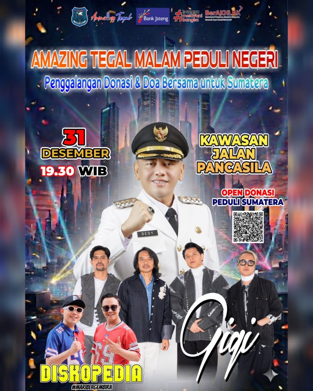Acara dengan tema Amazing Tegal Malam Peduli Negeri itu juga akan ada penggalangan donasi dan doa bersama untuk Sumatera. Acara tersebut diharapkan menjadi ajang kepedulian antarsesama ketika sebagian wilayah Indonesia mengalami musibah.