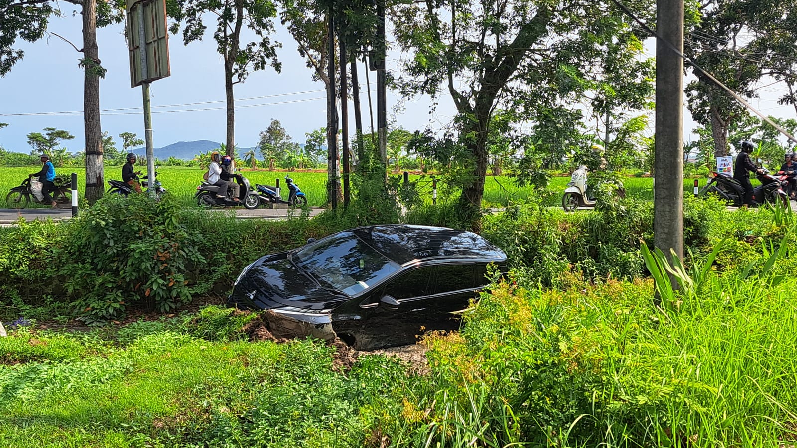 “Mobilnya tiba-tiba nyelonong masuk sawah. Katanya sopir sempat mengalami pandangan gelap sesaat,” ujarnya.