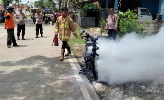 Motor jenis CB100 tanpa nomor polisi yang sudah modifikasi itu, terbakar sekitar pukul 20.10 WIB. Kebakaran kemungkinan kuat akibat korsleting dari sistem kelistrikan yang tidak standar.