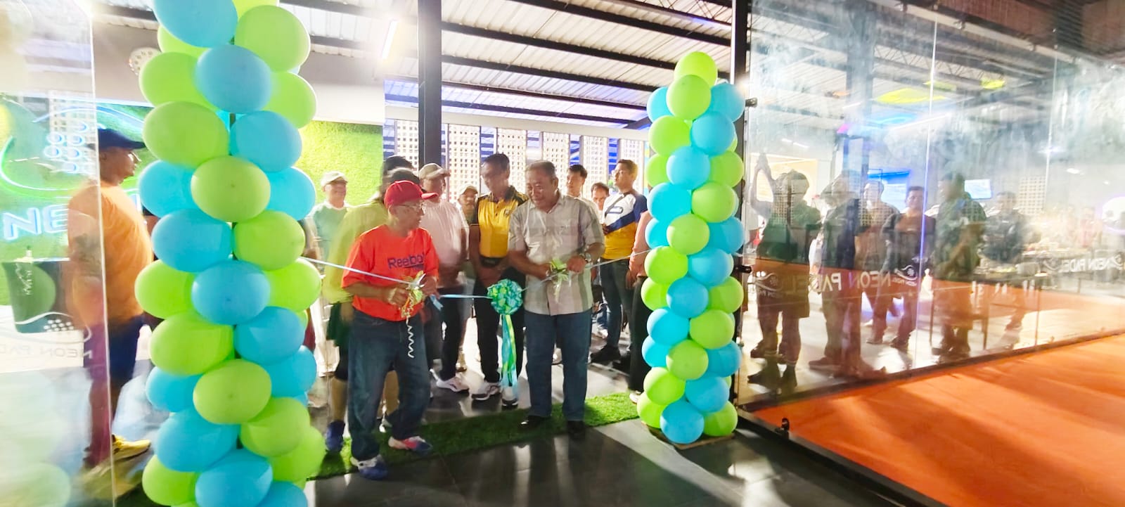 Peresmian fasilitas Neon Padel ditandai dengan penandatanganan prasasti, pemotongan kue, serta pemotongan pita, yang disaksikan unsur Forkopimda, HIPMI, dan komunitas olahraga.