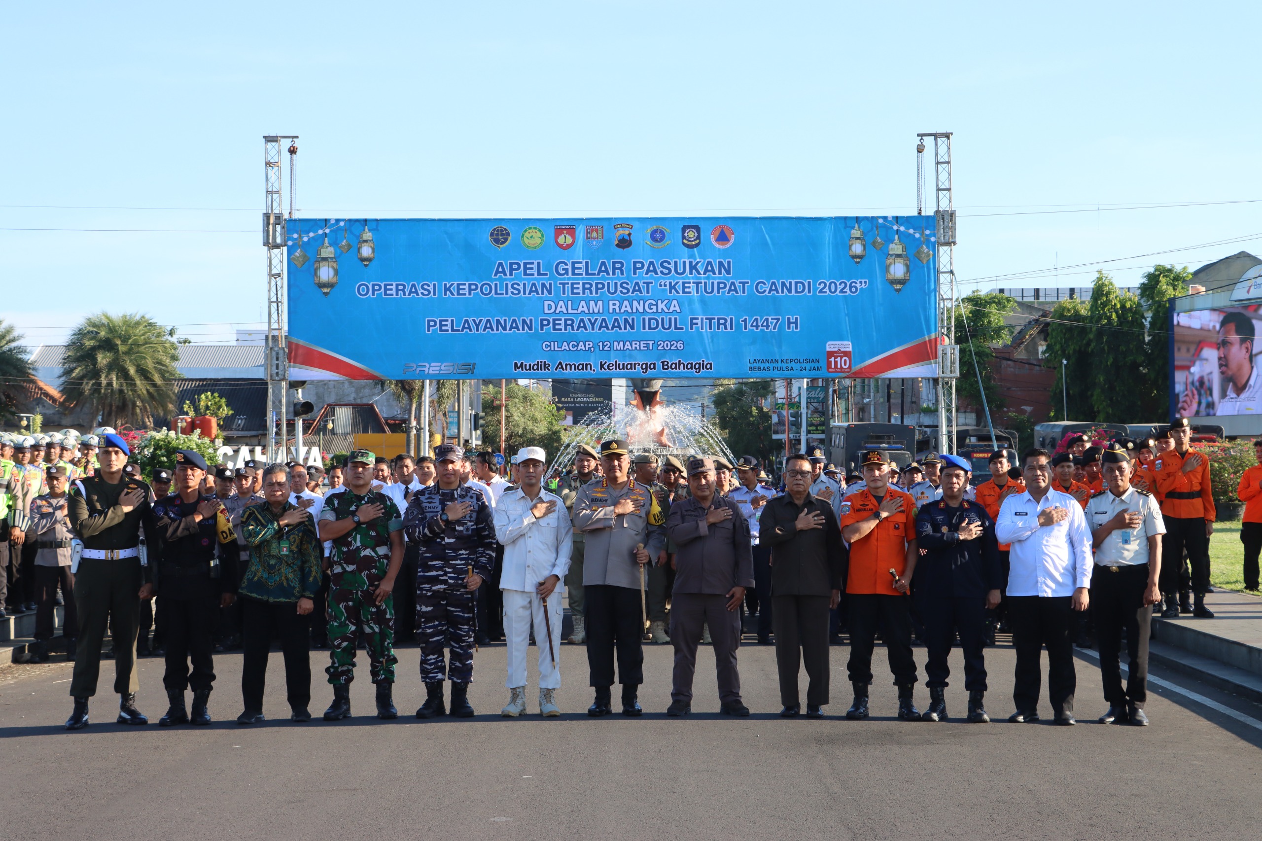 Kesiapan pengamanan tersebut ditandai dengan Apel Gelar Pasukan Operasi Ketupat Candi 2026 yang digelar Polresta Cilacap di Alun-alun Kabupaten Cilacap, Kamis (12/3/2026).