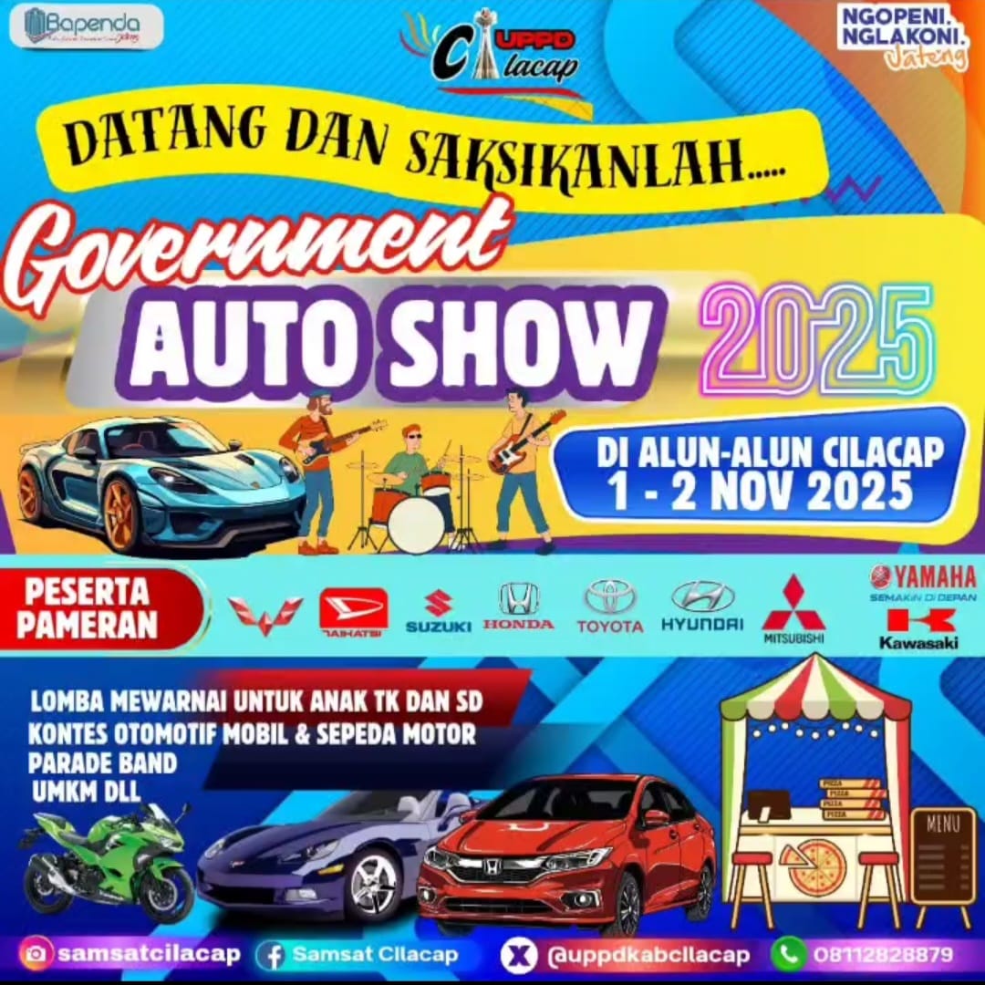 Event ini merupakan hasil kolaborasi antara Pemerintah Kabupaten Cilacap dan Samsat Jawa Tengah, menghadirkan deretan kendaraan terbaru, hiburan rakyat, parade musik, hingga promosi produk unggulan UMKM lokal.
