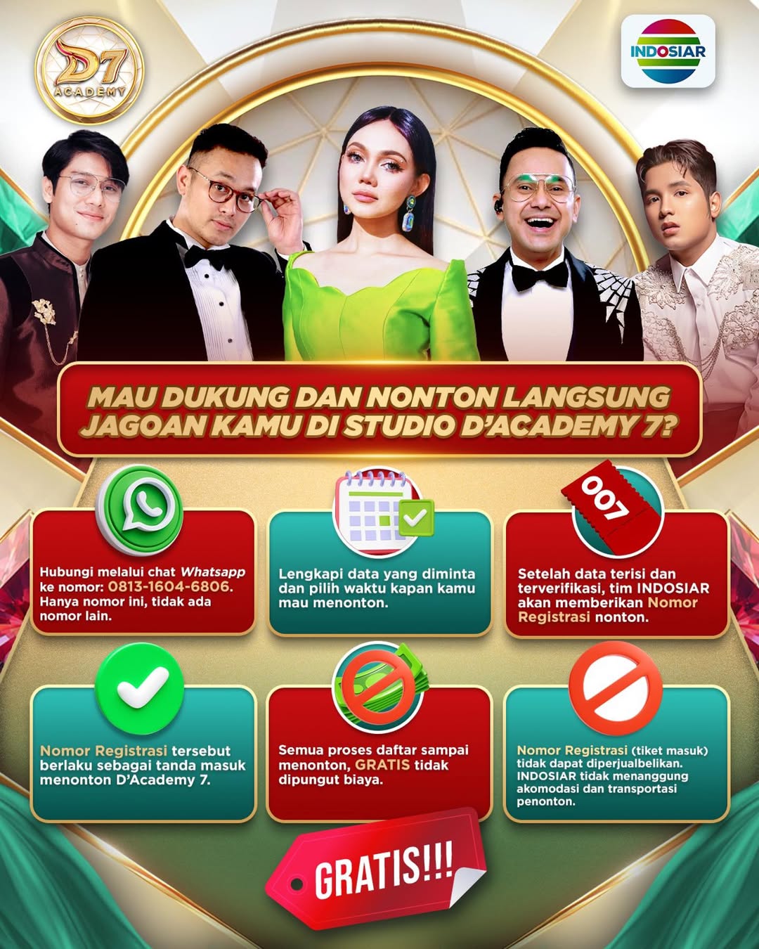 Berdasarkan informasi dari Instagram resmi @indosiar, proses pendaftaran untuk menonton langsung dilakukan melalui WhatsApp ke nomor 0813-1604-6806.