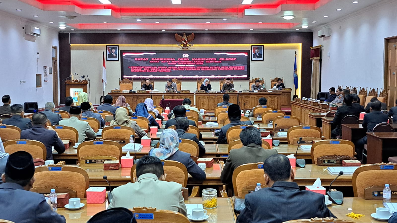 Rapat Paripurna dipimpin oleh Wakil Ketua DPRD Cilacap, Indah Mayasari, didampingi Ketua DPRD Taufik Nurhidayat, Wakil Ketua Suyatno dan Sindy Syakir. Hadir pula perwakilan Forkopimda, Sekretaris DPRD Basuki Priyo Nugroho, serta sejumlah pejabat di lingkungan Pemerintah Kabupaten Cilacap.