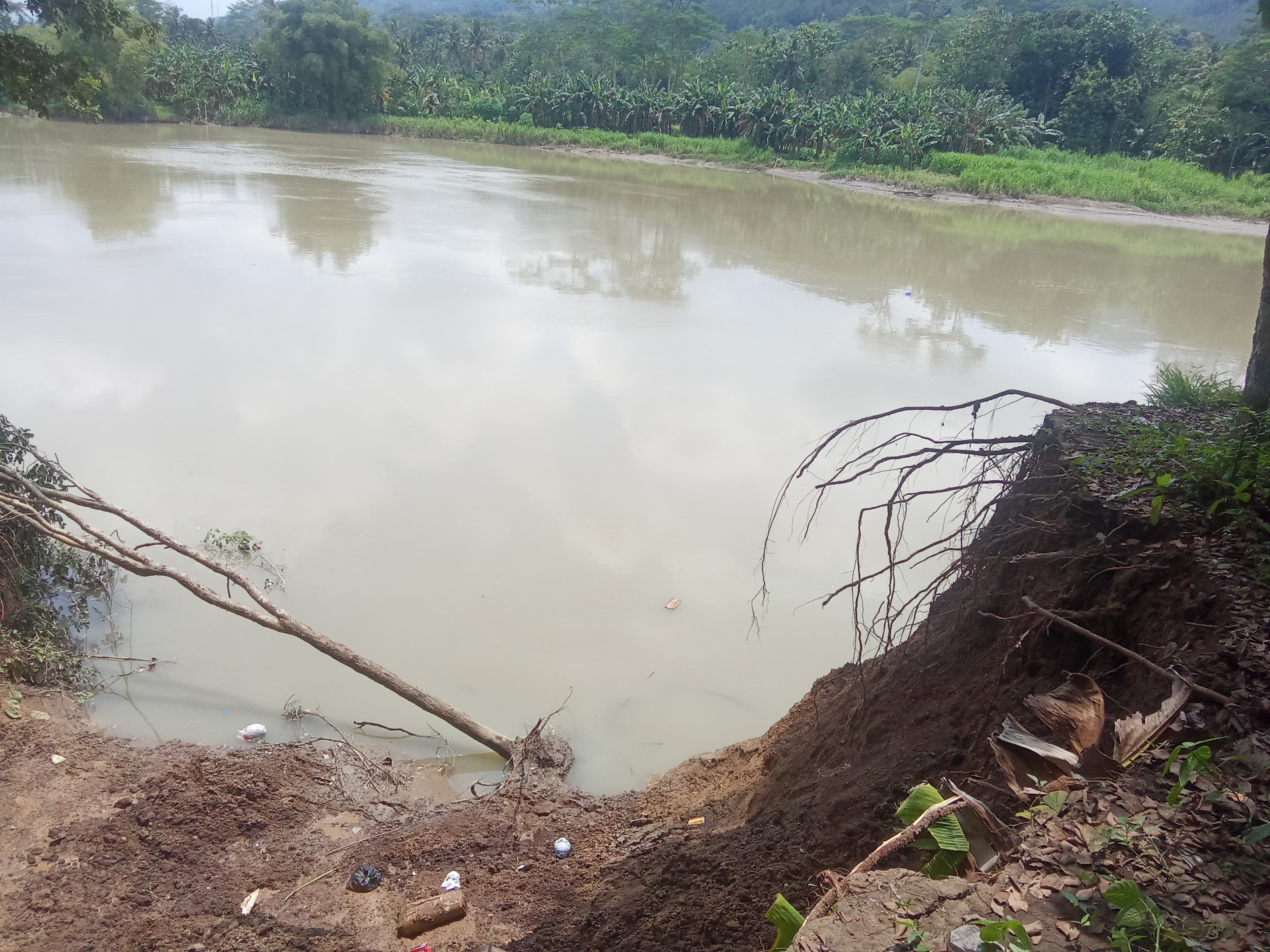 Dari pantauan di lapangan Minggu (23/11/2025) terlihat bagaimana cekungan menganga besar di tepian Sungai Serayu. Cekungan itu terjadi karena tanah terus dihantam aliran Sungai Serayu. Bahkan, terlihat pohon pun tumbang bersamaan dengan tanah yang tergerus aliran Sungai Serayu.