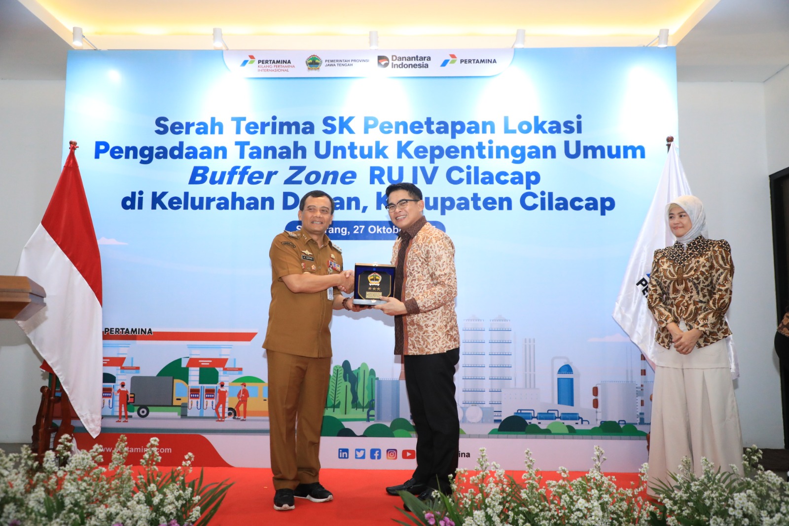 Perusahaan energi pelat merah itu menerima Surat Keputusan (SK) Penetapan Lokasi (Penlok) untuk pengadaan tanah buffer zone di Kilang Pertamina RU IV Cilacap dari Gubernur Jawa Tengah Ahmad Luthfi, Senin (27/10/2025) di Semarang.