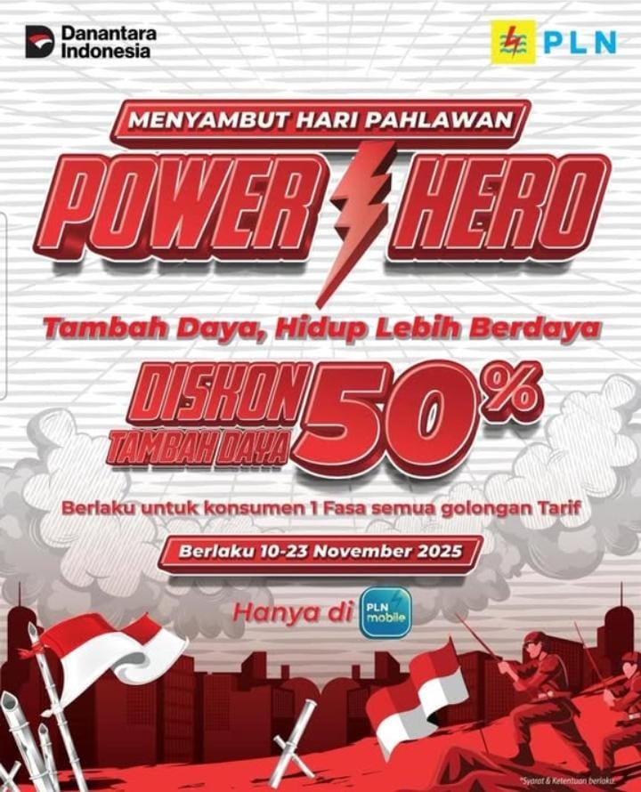 SERAYUNEWS- PT PLN (Persero) resmi meluncurkan promo “Power Hero”, program diskon 50% biaya tambah daya listrik yang berlaku secara nasional mulai 10–23 November 2025.