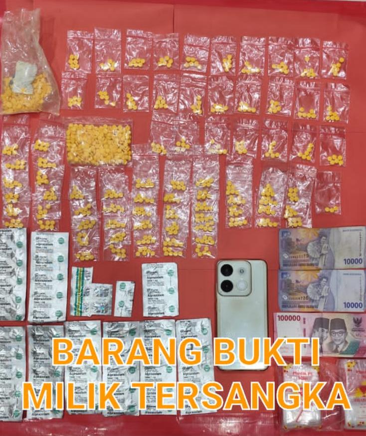 “Dari hasil penggeledahan, kami menemukan 967 butir obat keras daftar G dan 88 butir psikotropika. Total ada 1.055 butir yang diamankan bersama barang bukti lain,” ujarnya.