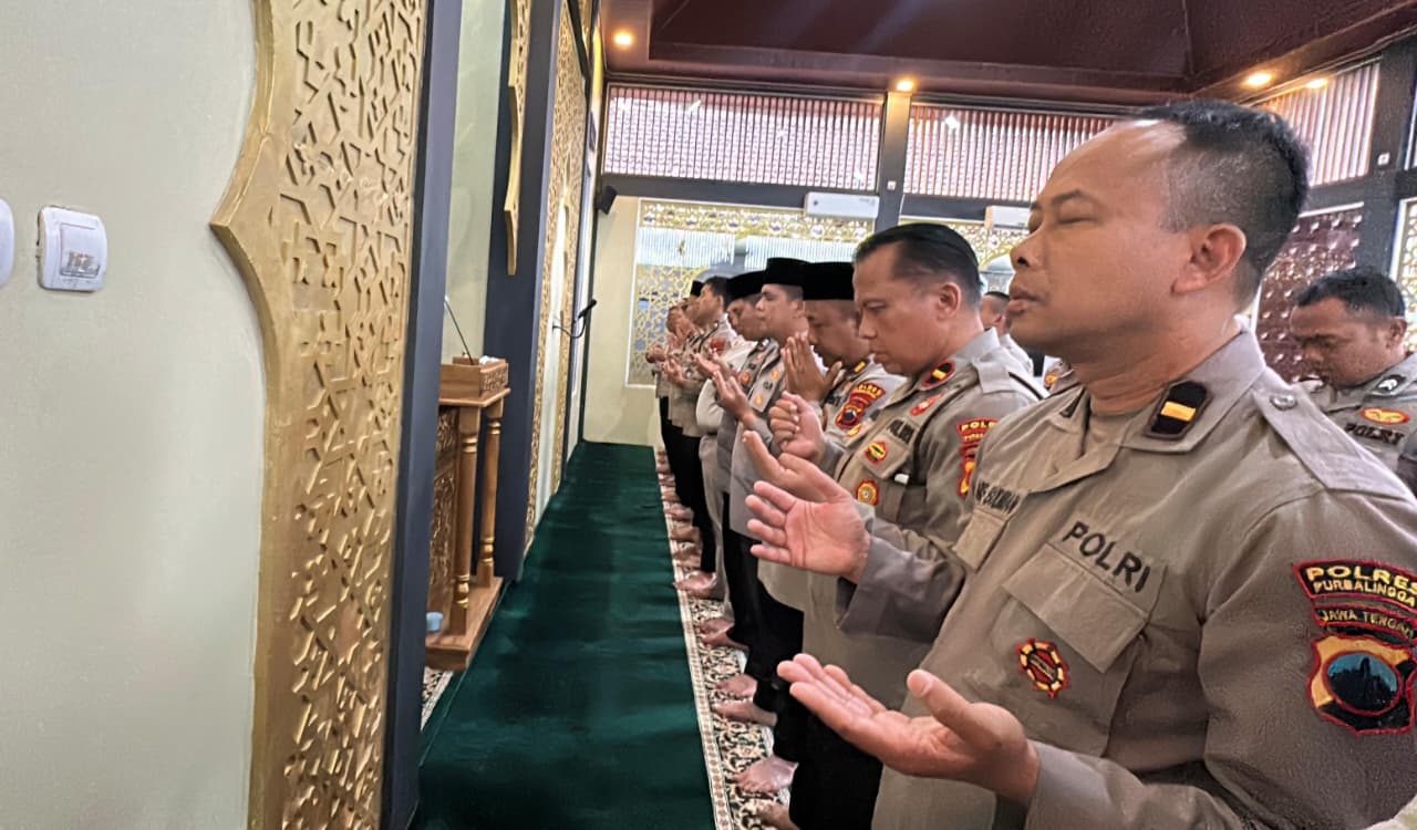 Salat gaib dipimpin oleh Imam Aipda Agus Miswanto dan diikuti oleh Kapolres Purbalingga AKBP Achmad Akbar, pejabat utama polres, serta anggota Polri dan PNS.