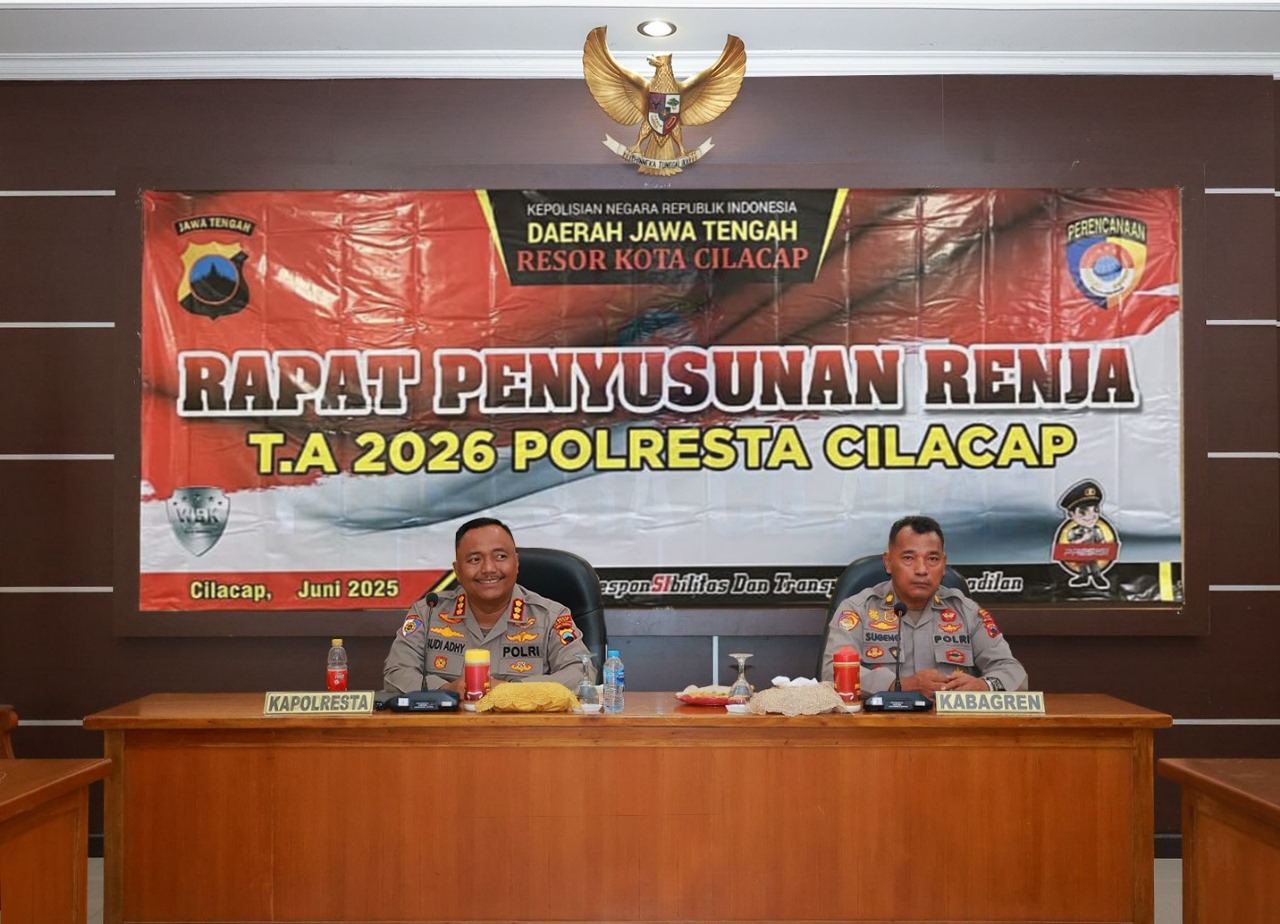 SERAYUNEWS – Polresta Cilacap menggelar rapat penyusunan Rencana Kerja (Renja) Tahun Anggaran 2026 di Rupatama Polresta Cilacap, Rabu (25/6/2025).