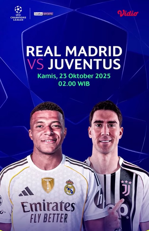 Tonton Real Madrid vs Juventus – Live 23 Oktober 2025, pukul 02.00 WIB di Vidio dan beIN Sports.