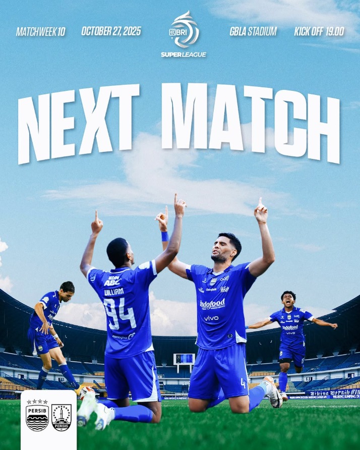 SERAYUNEWS- Persib Bandung akan menjamu Persis Solo dalam laga pekan ke-10 BRI Super League 2025/26 di Stadion Gelora Bandung Lautan Api (GBLA), Senin (27/10), pukul 19.00 WIB.