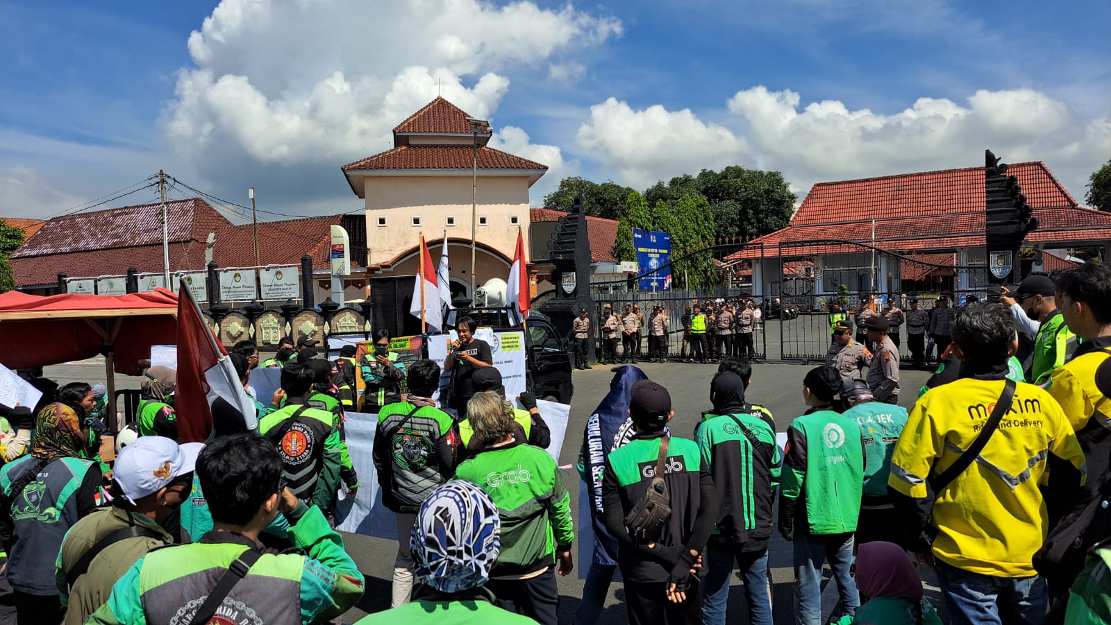 Dengan atribut hijau dan helm di tangan, para pengemudi menyuarakan sejumlah tuntutan yang mereka nilai belum mendapat perhatian serius dari pemerintah.