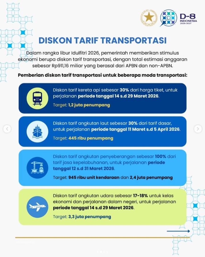 Pemerintah optimistis kebijakan ini akan menjaga momentum pertumbuhan nasional sekaligus memastikan masyarakat dapat merayakan Idulfitri bersama keluarga tanpa terbebani biaya transportasi yang tinggi.