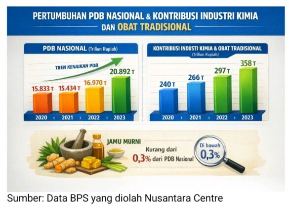 Meski memiliki legitimasi budaya yang kuat, kontribusi ekonomi jamu murni terhadap Produk Domestik Bruto (PDB) industri obat tradisional masih berada di bawah 0,3 persen pada periode 2022–2023.