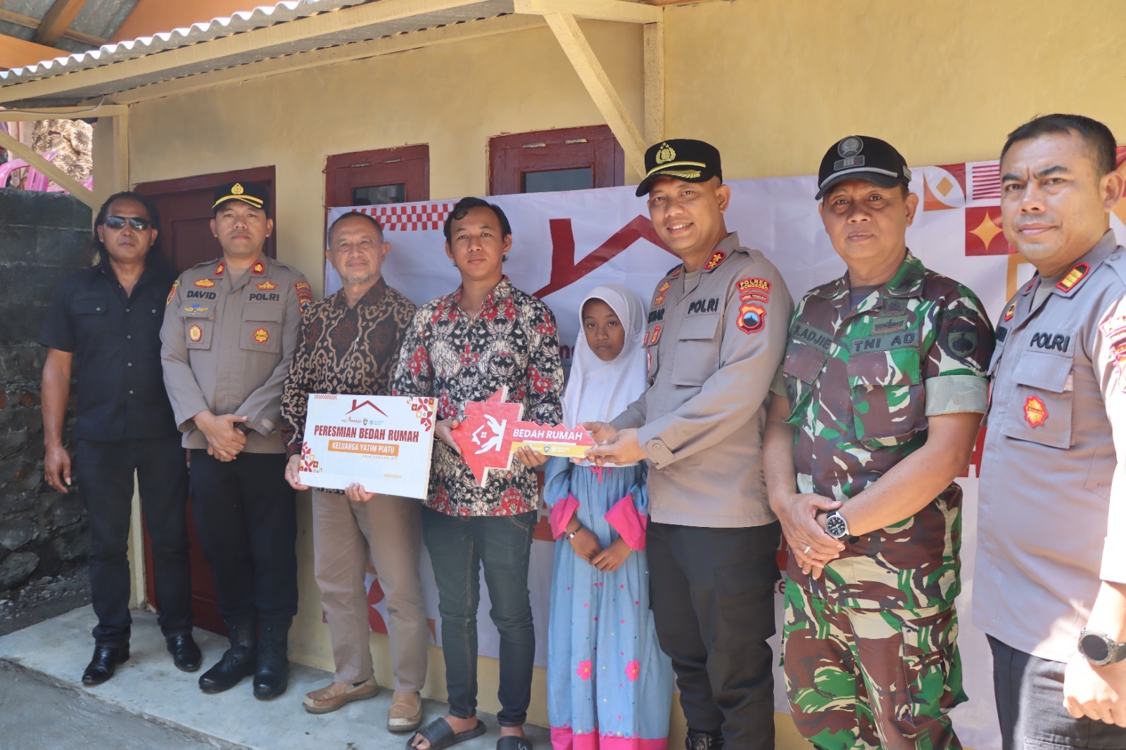 Setelah itu, Kapolres Wonosobo menyerahkan kunci rumah, potong tumpeng, hingga peninjauan langsung rumah hasil renovasi.