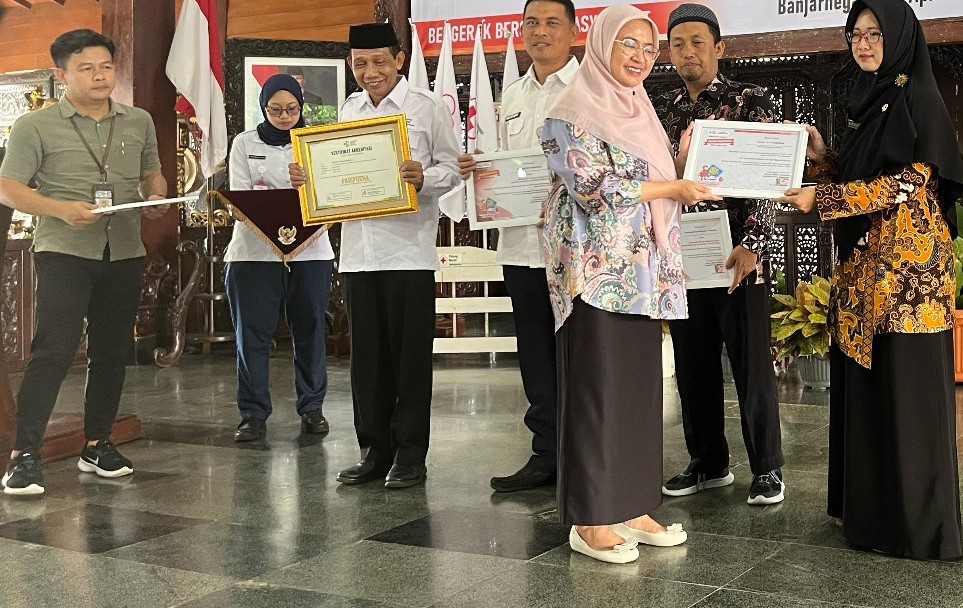 SERAYUNEWS-Sebagai bentuk apresiasi terhadap para kelompok donor darah sukarela, Bupati Banjarnegara memberikan penghargaan terhadap para kelompok donor darah sukarela. Penghargaan diberikan pada kelompok pendonor dari Muhammadiyah Pesantren, Kecamatan Wanayasa yang berhasil menyumbangkan 1.132 kantong darah selama tahun 2024.