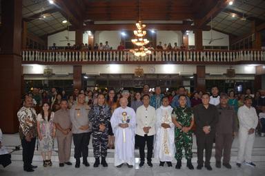SERAYUNEWS-Bupati dan Wakil Bupati Banjarnegara bersama jajaran Forkopimda menyambangi Gereja Kristen Indonesia (GKI) dan Gereja Santo Antonius pada saat Misa Malam Natal, Rabu Malam (24/12).