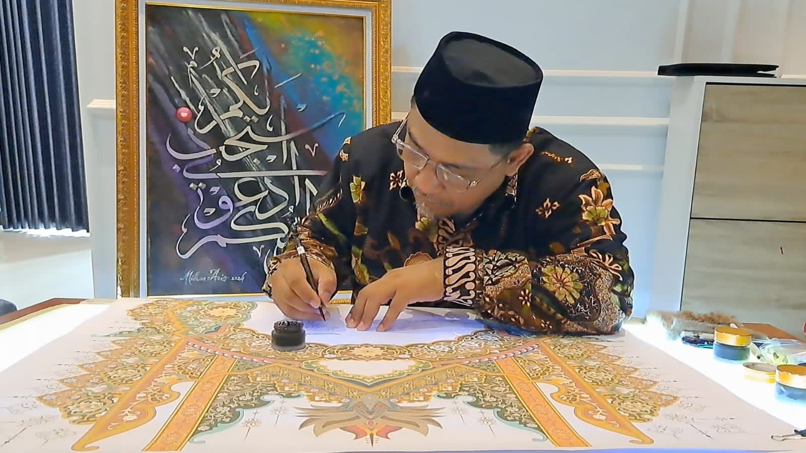 “Ada tim sket, tim penulis, tim tasheh, hingga finishing touch,” jelasnya.