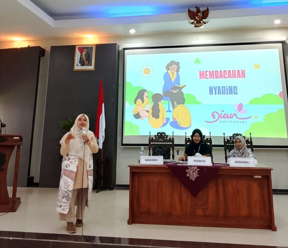 Dua narasumber dihadirkan dalam seminar ini. Masing-masing Dian Nofitasari (penggerak Read Aloud dan penulis buku anak) serta Syaffa Kusuma Wardani (praktisi pendidikan Montessori).