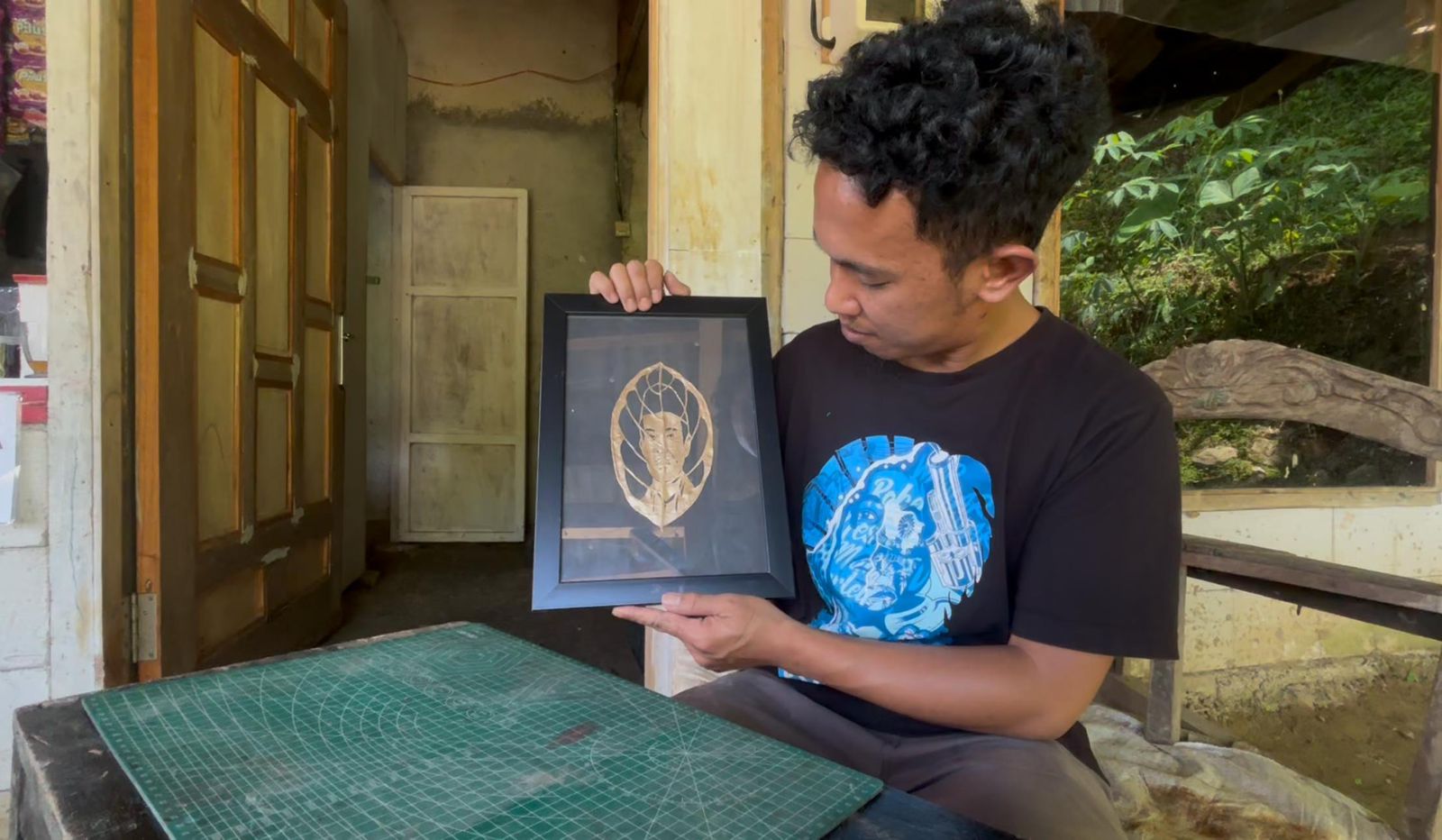 “Awalnya malah saya melukisnya di sandal. Terus di sini kan banyak daun Nangka, saya coba-coba ternyata bisa dilukis kemudian dicukil sampai membentuk wajah seseorang. Dan ternyata ada yang tertarik juga,” ujarnya, Sabtu (13/12/2025).