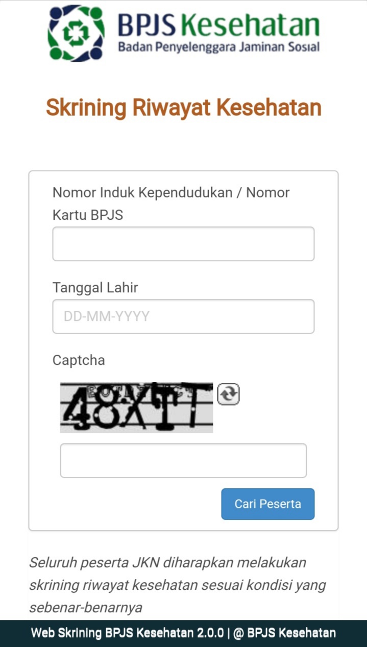 Peserta yang ingin melakukan skrining secara mandiri dapat mengakses layanan melalui website resmi BPJS Kesehatan dengan langkah berikut: