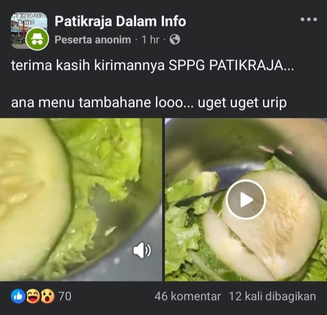 “Terima kasih kirimannya SPPG Patikraja… ana menu tambahane loo… uget-uget urip”.