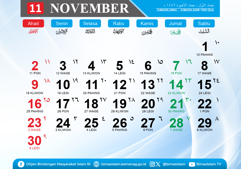 Berikut tabel lengkap pasaran Jawa untuk November 2025: