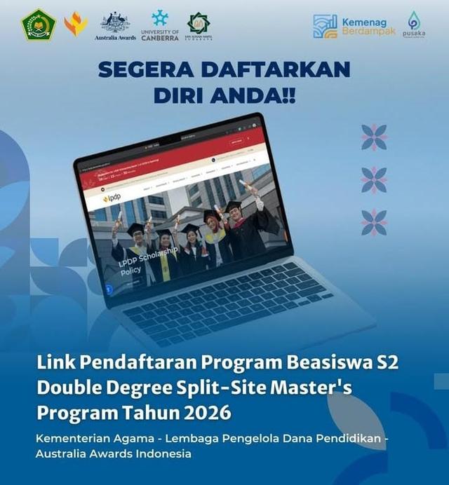 Masih Dibuka! Beasiswa S2 Double Degree 2026 Kemenag-Australia, Cek Syarat dan Cara Daftarnya