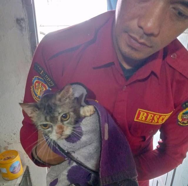 Evakuasi Dramatis, Kucing Terjebak di Dalam Sumur Berhasil Diselamatkan Petugas Damkar Banyumas