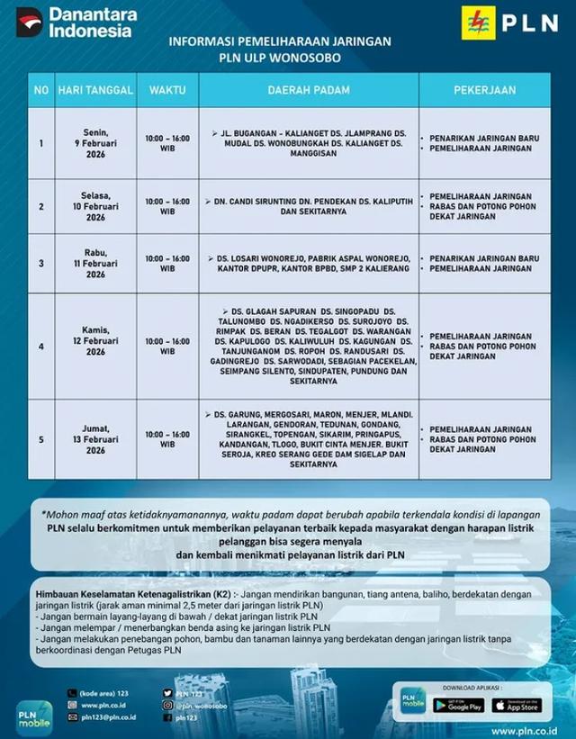 jadwal pemadaman listrik Wonosobo Februari 2026