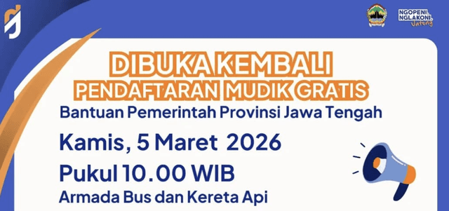 Mudik Gratis Jawa Tengah 2026 Kembali Dibuka