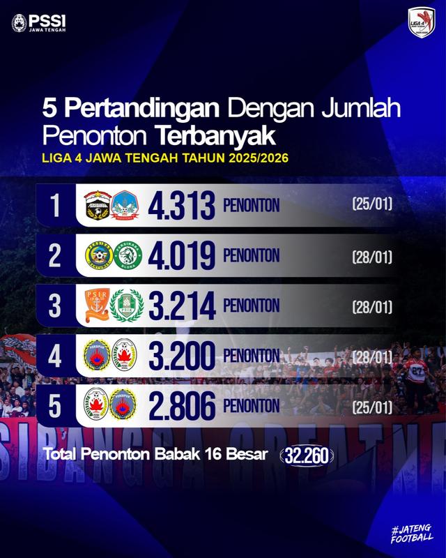 32.260 Penonton Padati Babak 16 Besar Liga 4 Jateng, Laga Persibangga vs Persitema Paling Ramai