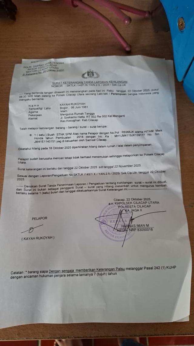 Warga Menganti Kesugihan Cilacap Kehilangan STNK