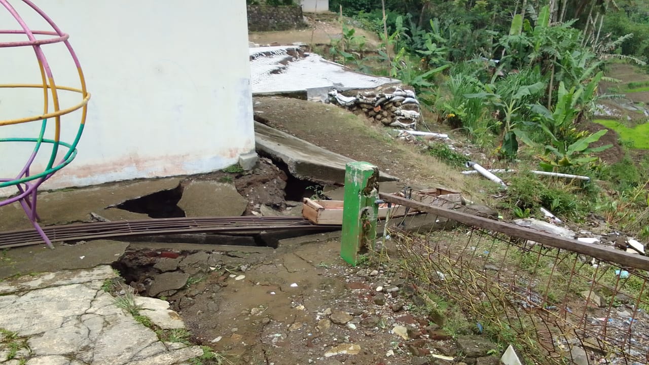 Selain rumah warga, rekahan tanah juga mengancam bangunan sekolah SMPN 3 Satap Pandanarum, termasuk bangunan PAUD Tunas Bangsa yang berada tidak jauh dari lokasi pergerakan tanah.