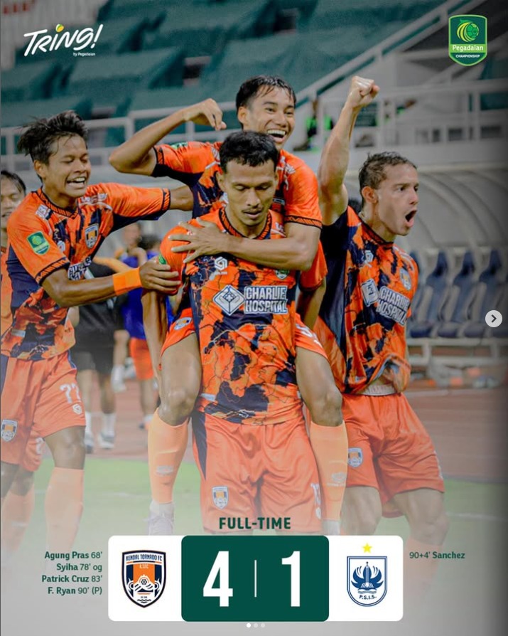 Tak berhenti di situ, Patrick Cruz menambah keunggulan lewat sepakan keras menit ke-83, sebelum Felipe Ryan menutup kemenangan besar di menit ke-90.