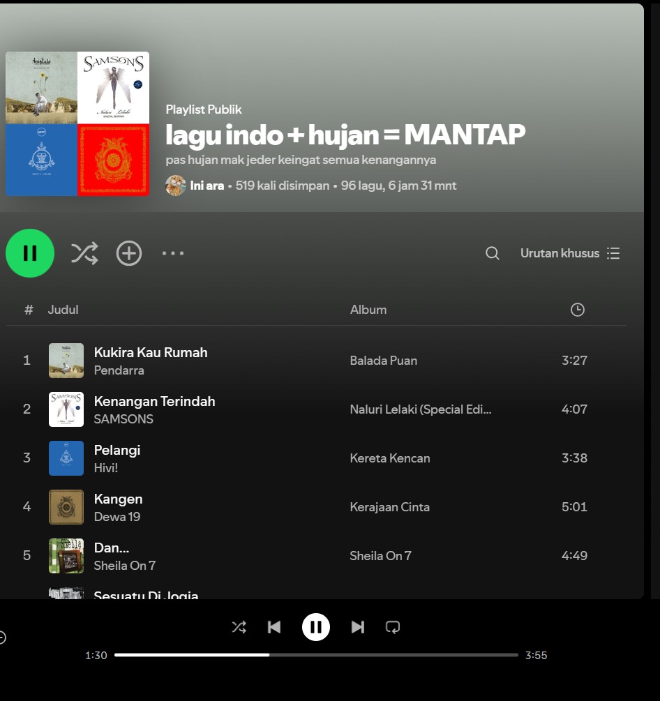 Jadi, ketika langit mulai mendung dan rintik turun perlahan, coba nyalakan playlist berisi kelima lagu di atas.