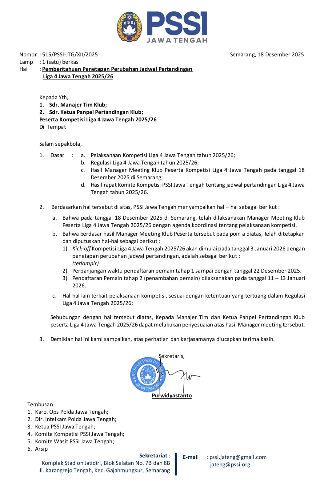 Update!, Kick Off Liga 4 Jateng  2025/2026 Ditunda Tahun Depan