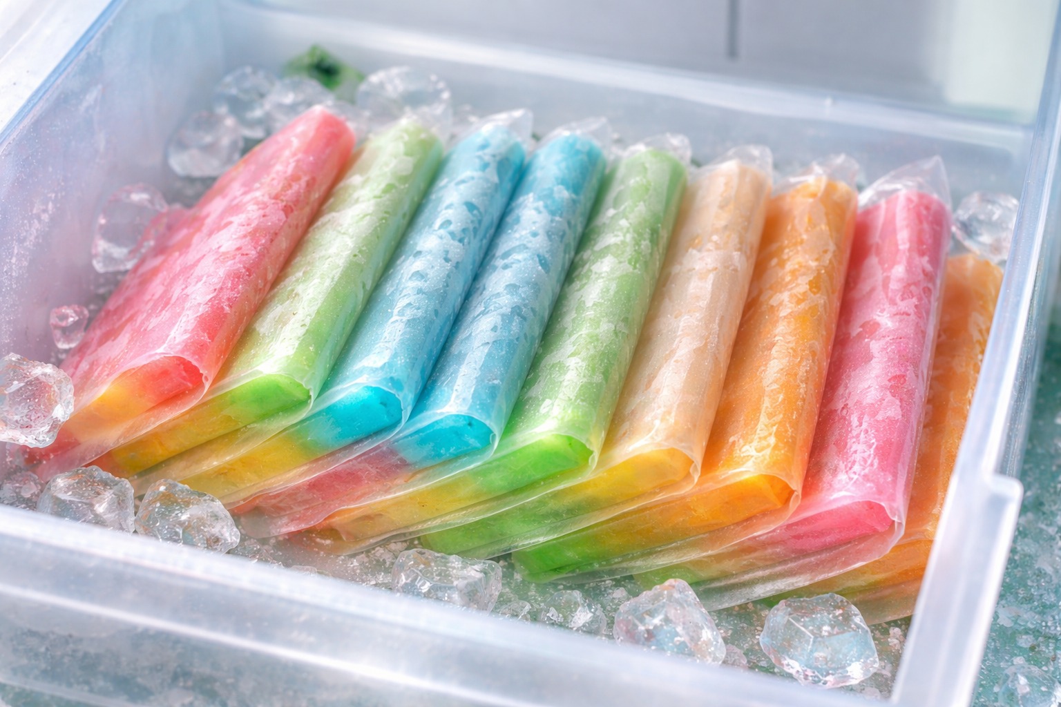 Pastikan es benar-benar beku sebelum disusun agar tidak saling menempel dan teksturnya tetap lembut saat disantap.